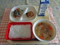 今日は魚を主菜にした体に優しい和食の献立でした。寒い日は、豚汁のように、肉や野菜などが入った具沢山の汁物は体が温まってうれしいですね。今日もよく食べていました。
