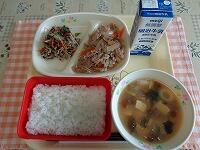 今日の献立は、「ごはん さばの塩焼き もやしとのりのあえもの ピり辛みそ汁 牛乳」でした。