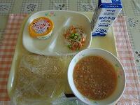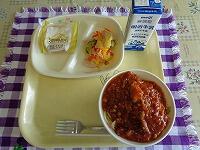 今日の献立は、「ミートソーススパゲティ ツナサラダ ヨーグルト 牛乳」でした。