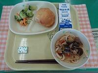 今日の献立は、「カレーうどん チキンのオーブン焼き 根菜サラダ 牛乳(ミルメークコーヒー)」でした。