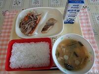 今日の献立は、「セルフたけのこごはん いわしのやわらか生姜煮 大根のみそ汁 牛乳」でした。