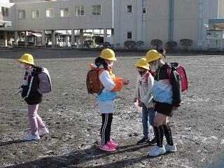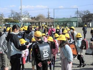 水曜日の一斉下校前に、校庭で令和4年度に向けた新登校班編制が行われました。下級生を上級生が優しく各班に誘導し、担当の先生の指示に従って新しい登校班を編制することができました。