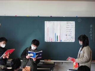 1月10日(火)2学期後半授業開始日。朝の会の時間を利用し、オンラインで校長先生からお話がありました。「うさぎ年は飛躍の年でもあるし、向上の年でもあるので、飛び跳ねるうさぎのように、元気に今までの自分を飛び越えてほしい」という話をされました。また、「新しい学年に向かってのカウントダウンも今日を入れて81日間。一日一日を大切に過ごしてほしい」ともお話をされました。その後、各学級で新年の抱負を発表し合ったり、取り組んだ課題の確認などをしていました。
