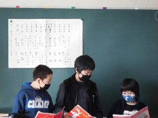 4年生の国語の授業。「発表会をし、感想を伝え合おう」というめあての下、グループごとに調べたことを発表し合いました。