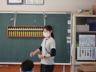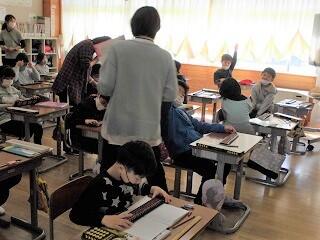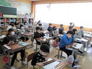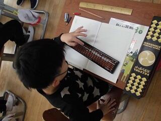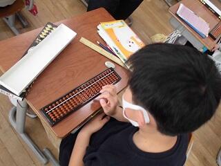 3年生の算数では、「そろばん」に取り組んでいます。この日は、数字をそろばんで正確に表そうと一所懸命に取り組んでいる子どもたちの様子が見られました。