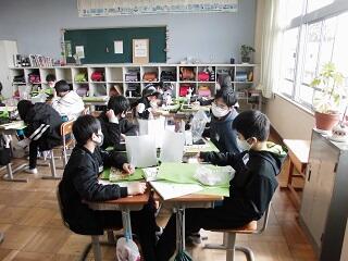 12月20日(火)ぶらぶらクラブの皆様にご協力をいただき、5年生のミシンの学習が行われました。初めてのミシン。まず担任からミシンの使い方の説明後、いろいろな基本の縫い方を教えていただきました。この日は直線縫いを全員仕上げ、「縫えた!」という喜びや、まっすぐに縫えた喜びをそれぞれが表現していました。2回目は22日(木)に行われ、返し縫いや,曲げて縫う方法を教えていただきました。