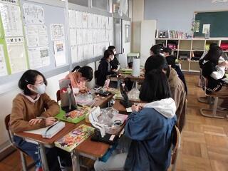 この日は、グループで互いの作品を鑑賞し合いました。「未来の自分」の実現に向けて、一人一人が夢に向かって努力していくことでしょう。