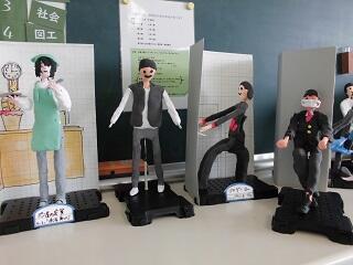 図工で取り組んできた「未来の自分」が完成しました。10年後・20年後の自分の姿をイメージし、形に表しました。