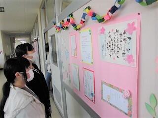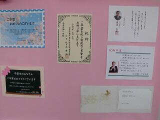 卒業式を二日後に控え、関係する皆様からたくさんの祝詞が届いています。6年生一人一人の心に“お祝いのメッセージ”を届けたいとの思いから、今週から6年教室廊下側壁面に掲示されています。
