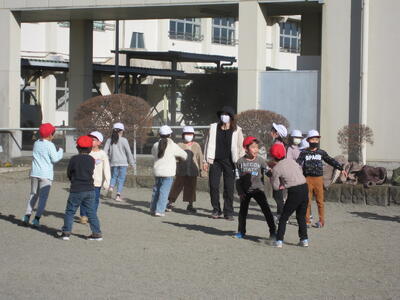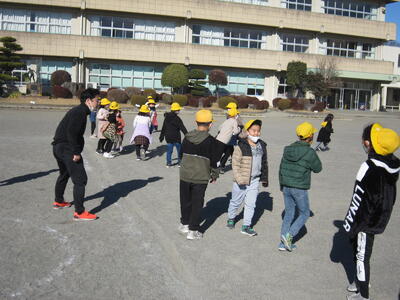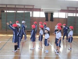 6年生の希望で、今日は1年生との交流の時間が設けられました。グループごとに6年生と1年生が交流し、「だるまさんが転んだ」「鬼ごっこ」などをして楽しみました。