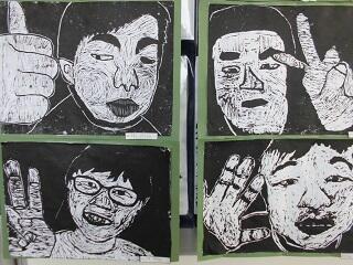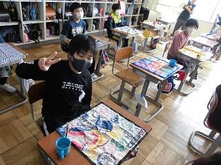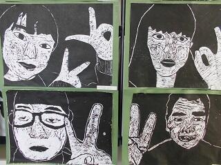4年生が取り組んできた木版画が、ついに完成しました。彫刻刀の使い方から始まり、ひたすら作品づくりに励んできた成果が実を結びました。