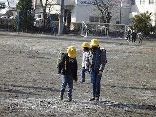 3月の下旬とは思えないほど、今朝は冷え込みました。気温は氷点下になり、校庭には氷がはっていました。真冬のような寒さに身を縮めて登校した子どもたちですが、校庭の氷に嬉しそうにしている姿も見られました。