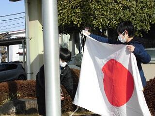 また、5年生は国旗当番の仕事を毎日しっかりと行っています。