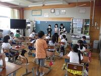 業間の時間を使って、スクールバス利用児童の打合せが行われました。担当の先生から「令和4年度のスクールバス座席表」と「スクールバス内での消毒」のお話がありました。