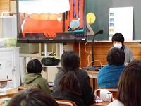 11月16日(水)朝の活動の時間を利用して、「お話ポットの会」の皆様による読み聞かせが行われました。挿絵をテレビに映し出しながら読むスタイルや本を直接手に持って子どもたちに見せながら読むスタイルなど、工夫を凝らしながら読み聞かせをしていただきました。子どもたちは、耳を傾けながらお話の世界に浸っておりました。