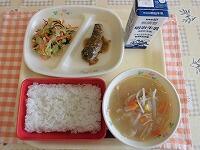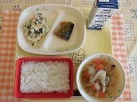 今日の献立は、「ごはん さばのカレー醤油焼き ごぼうサラダ さつまいもと小松菜のみそ汁 牛乳」でした。