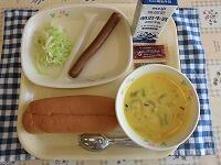 今日の献立は、「ホットドック 秋の香りのシチュー 牛乳」でした。