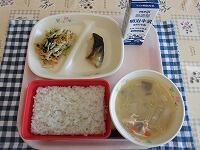 今日の献立は、「ごはん さばのみそ煮 れんこんサラダ ごぼう汁 牛乳」でした。