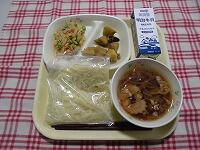 今日の献立は、「ごはん いかの天ぷら 春雨の中華サラダ 豚汁 牛乳」でした。
