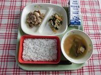 今日の献立は、「ごはん いわしのごまみそ煮 塩昆布あえ どさんこ汁 牛乳」でした。