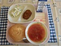 今日の献立は、「ビスキュイパン トマトつけ汁うどん ブロッコリーサラダ 牛乳」でした。