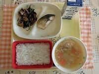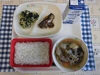 今日は、魚を中心にいろいろな野菜をとり入れた体に優しい和食の給食でした。さんまをかつお節で煮たものが出ましたが、骨までやわらかくなっていましたので、みなさん安心して食べていました。野菜を豊富に使った煮物や汁物もよく食べていて、完食する児童がたくさんいました。