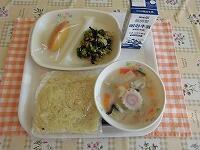 今日の献立は、「セルフビビンバ かんぴょうの中華スープ 牛乳」でした。