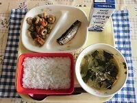 今日の献立は、「ごはん いわしの生姜煮 五目煮豆 かきたま汁 牛乳」でした。