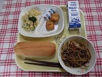 今日の献立は、「焼きそばパン チキンナゲット チーズサラダ 牛乳」です。