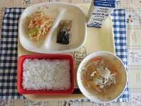 今日の献立は、「塩こうじみそラーメン 蒸しギョーザ かんぴょうサラダ 牛乳」でした。