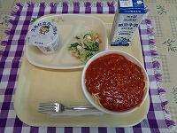 今日の献立は、「ミートソーススパゲティ シーザーサラダ ヨーグルト 牛乳」でした。