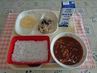 今日の献立は、「ごはん チキンカレー 福神漬け ツナと海藻のサラダ 牛乳」でした。