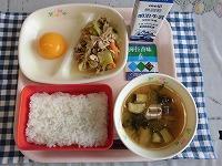 今日の献立は、「ごはん 鮎の甘露煮 もやしとのりのあえもの 豚汁 牛乳」でした。