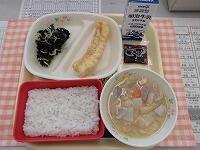 今日の献立は、「いか天丼 たくあんあえ 豚汁 牛乳」でした。