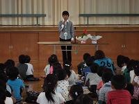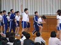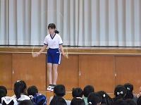 今日は、二重跳びを上手に跳ぶコツを、6年生児童が披露してくれました。