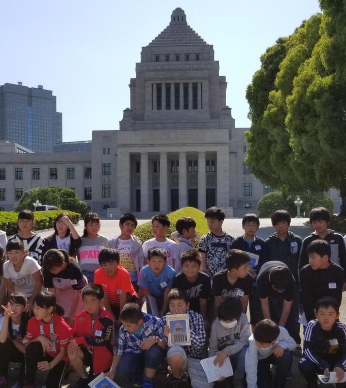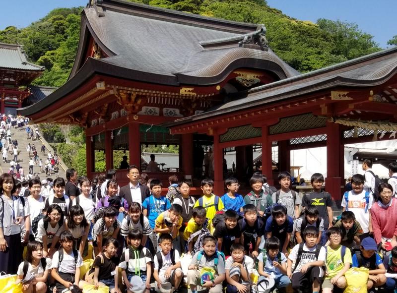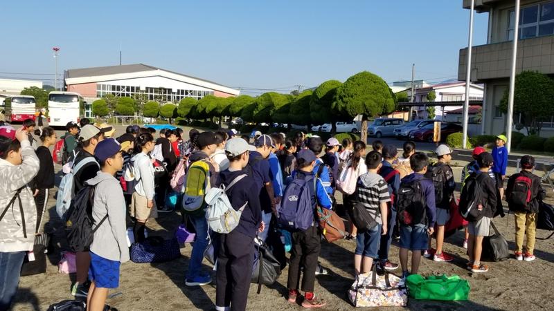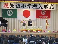 矢板小学校を代表して、5年生児童が、体育館前で 出迎えました。