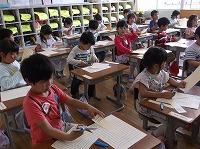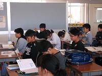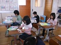 漢字の練習やかけ算九九の検定を受けている子どもがいました。