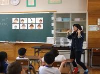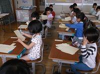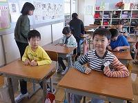 自己紹介のあと、国語の勉強の様子を見学したり、ジャンケン列車をして遊んだりしました。