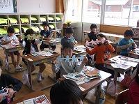 ちょうどその時間、矢板認定子ども園の年長児が、学校訪問で1年1組を訪れており、