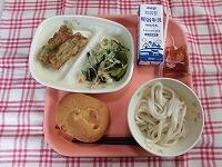 今日の献立は、「和風ビビンバ 梅かつおあえ なすのみそ汁 牛乳」でした。