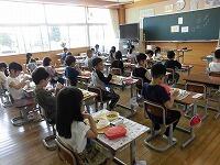ゆばは、豆乳を熱く温めてその表面にできた「まく」を竹串などで引き上げたもので、たんぱく質がたっぷり含まれている食べ物です。今日は、この湯葉を使ったみそ汁が出ました。今日の給食も、みなさんおいしそうに食べていました。
