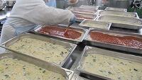 アーモンドは、疲れをとってくれるビタミンB1、健康な皮膚や髪の毛をつくるビタミンB2、記憶力のアップに役立つビタミンE、骨を丈夫にするカルシウム、貧血を予防する鉄分などが多く、栄養豊富な食べ物です。今日は、このアーモンドとバター、グラニュー糖を使って、アーモンドバターを作り、調理場に届いた食パンに塗って、オーブンで焼きました。