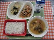 今日の献立は、「ごはん いわしの胡麻味噌煮 きりたんぽ汁 ゆずかつおあえ 牛乳」でした。