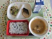 今日の献立は、「ごはん いわしの胡麻味噌煮 切り干し大根の煮物 若竹汁 牛乳」でした。