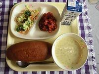 今日の献立は、「きなこトースト クラムチャウダー シーザーサラダ 牛乳」でした。
