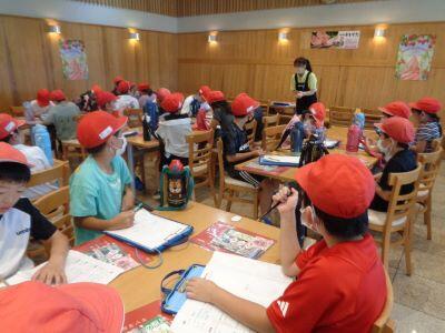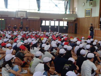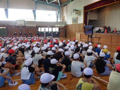 校長先生のお話の後、児童指導主任の先生から「夏休みの生活で気をつけること」という内容のお話がありました。
