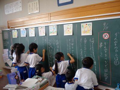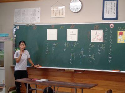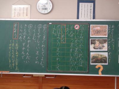 国語科「かん字のひろば」の学習で、問題に出てきた漢字を黒板に書いていますにっこり