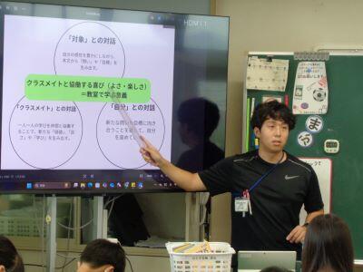 「対話がなぜ大切なのか」ということを、先生が説明しています期待・ワクワク