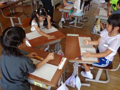 「書き方ノート」に、丁寧な文字をしっかりと書いていますねにっこり