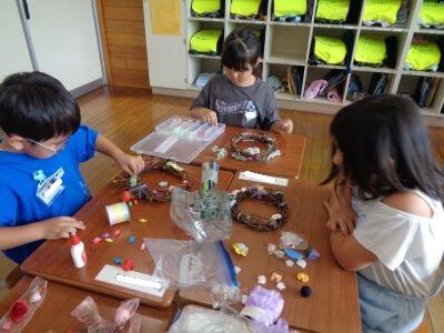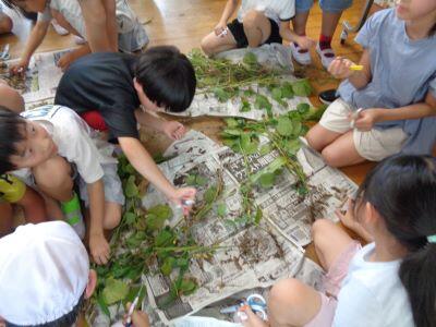 一人一鉢で育てたアサガオのつるを利用して、リース作りに取り組んでいますキラキラ